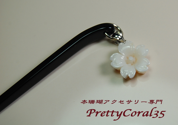 白サンゴ 桜の花のかんざし